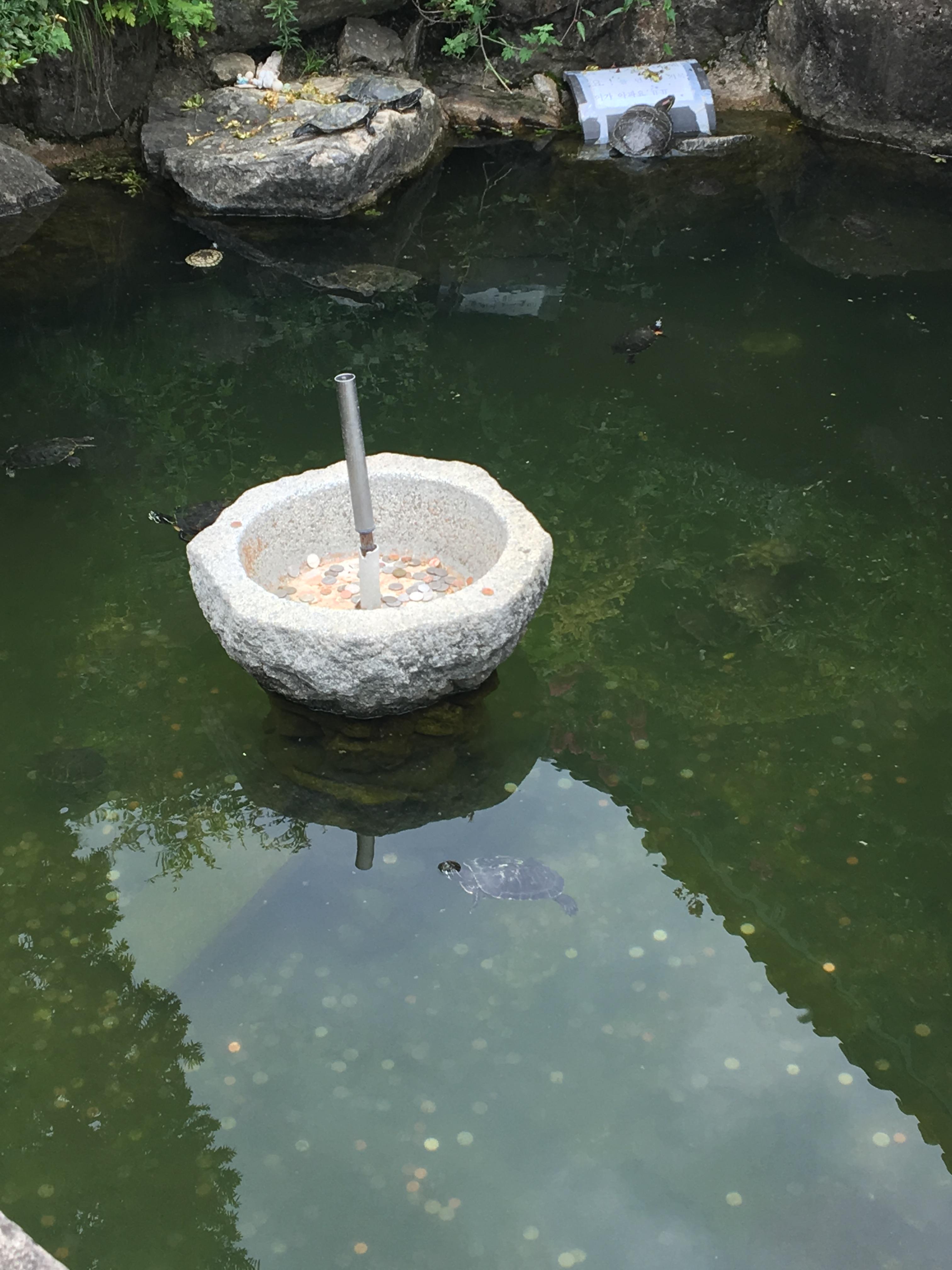 연못 바닥의 수많은 동전들이 보이는데 중금속에 중독되지나 않을까 싶기도 하다.