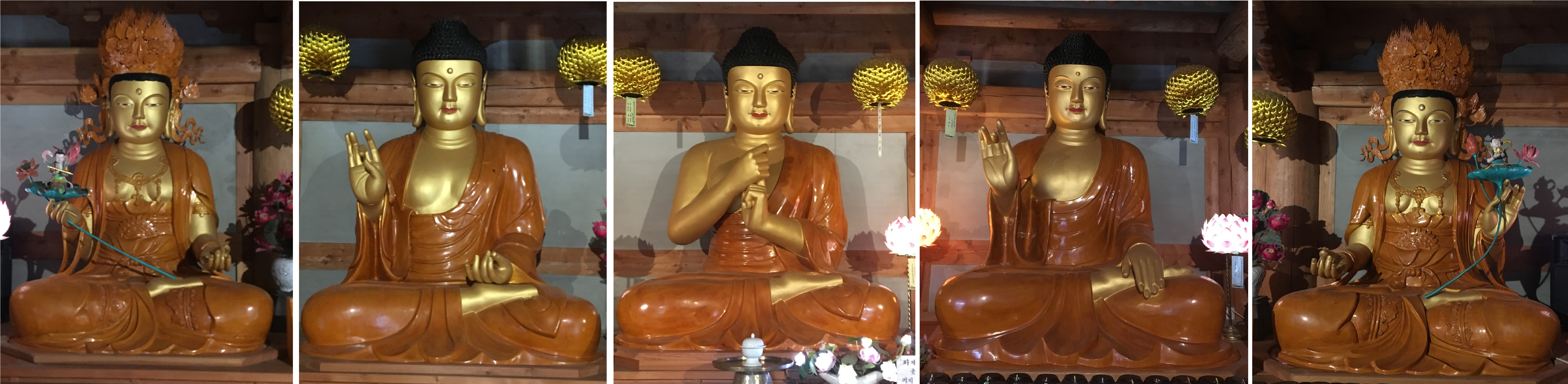순서대로 대세지보살, 아미타불, 비로자나불, 석가모니불, 관세음보살 순서이다.