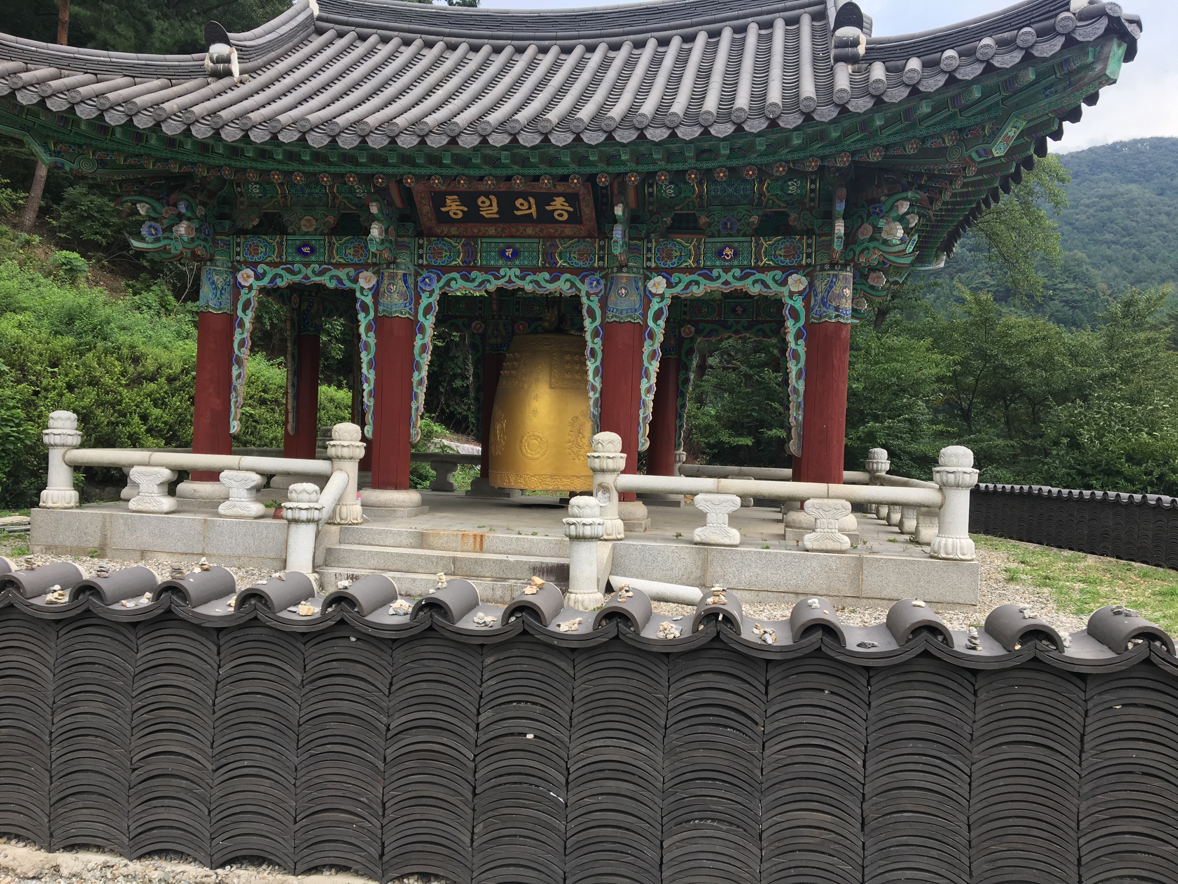 기와담장너머 통일의 종이 있다.