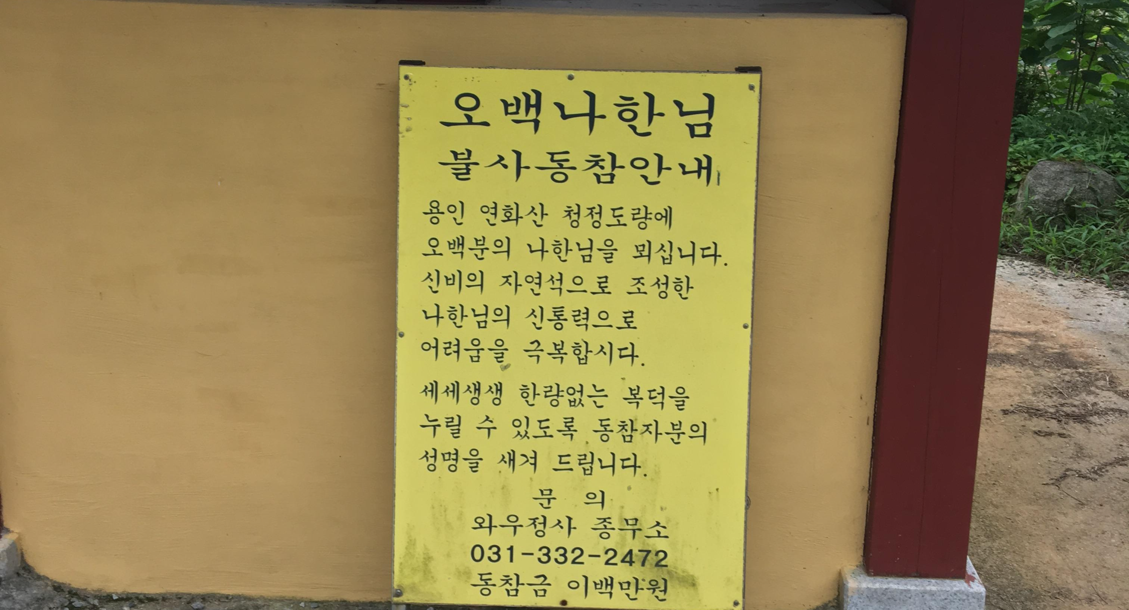 이백만 원만 있으면 오백나한전에 자신의 이름을 넣은 한 분의 나한을 모실 수 있는 듯하다.
