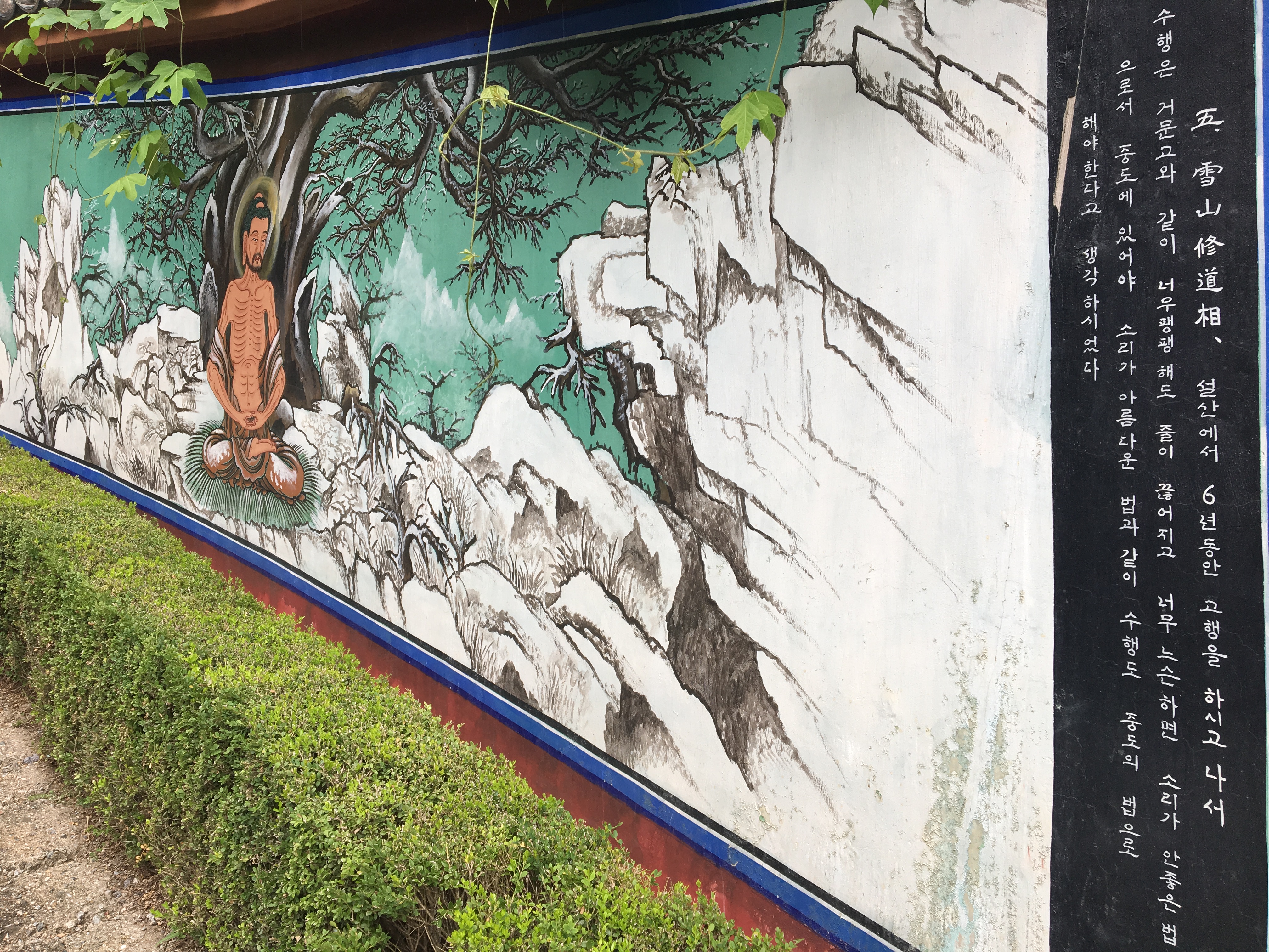 앙상한 갈비뼈와 가죽밖에 남지 않은 몸과 핏줄의 도드라짐이 수행의 어려움을 보여주는 듯하다.