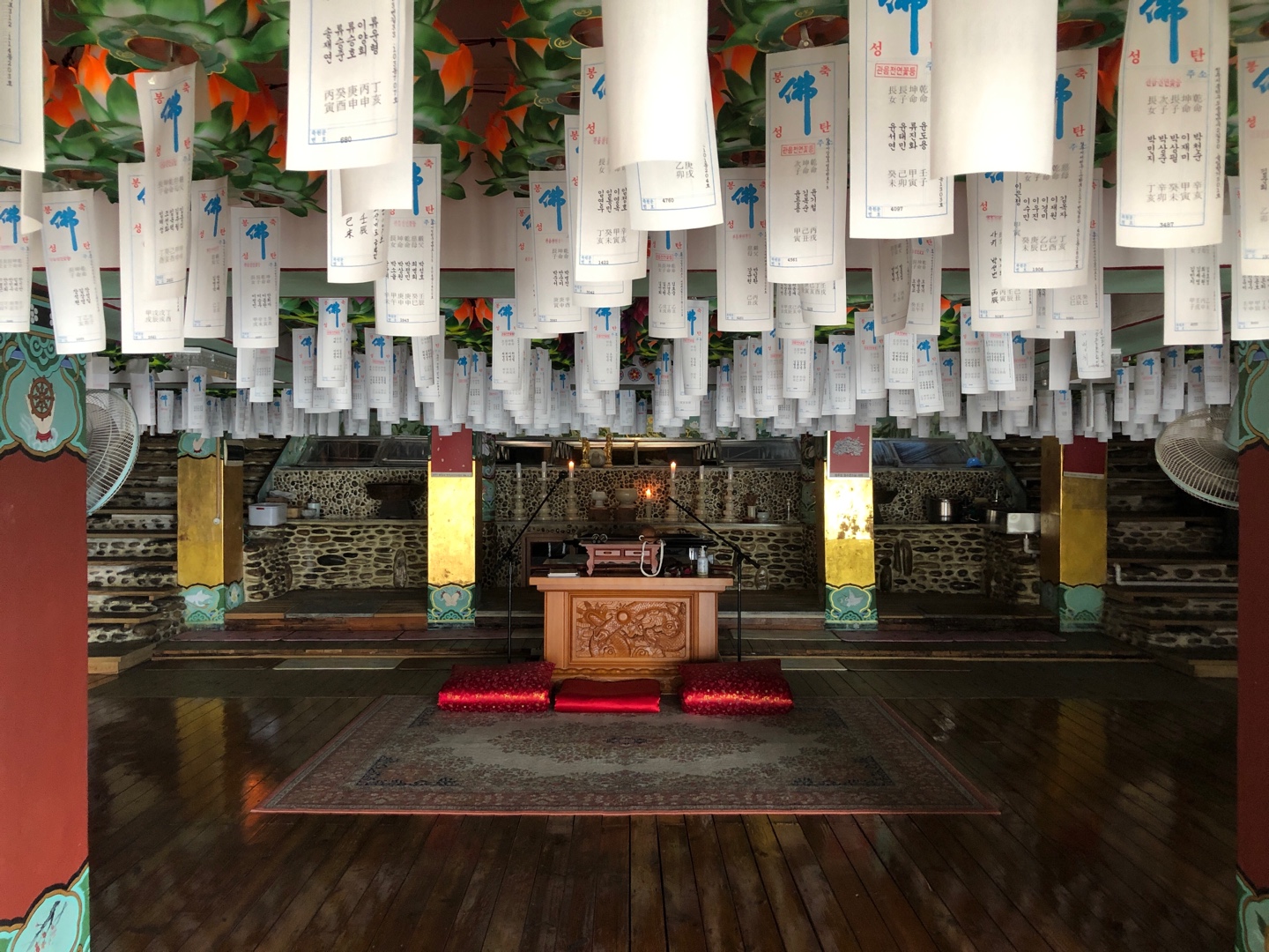 내부는 낮은 높이에 연등 매달린 각 집안의 소원지가 머리에 계속 부딪힌다.