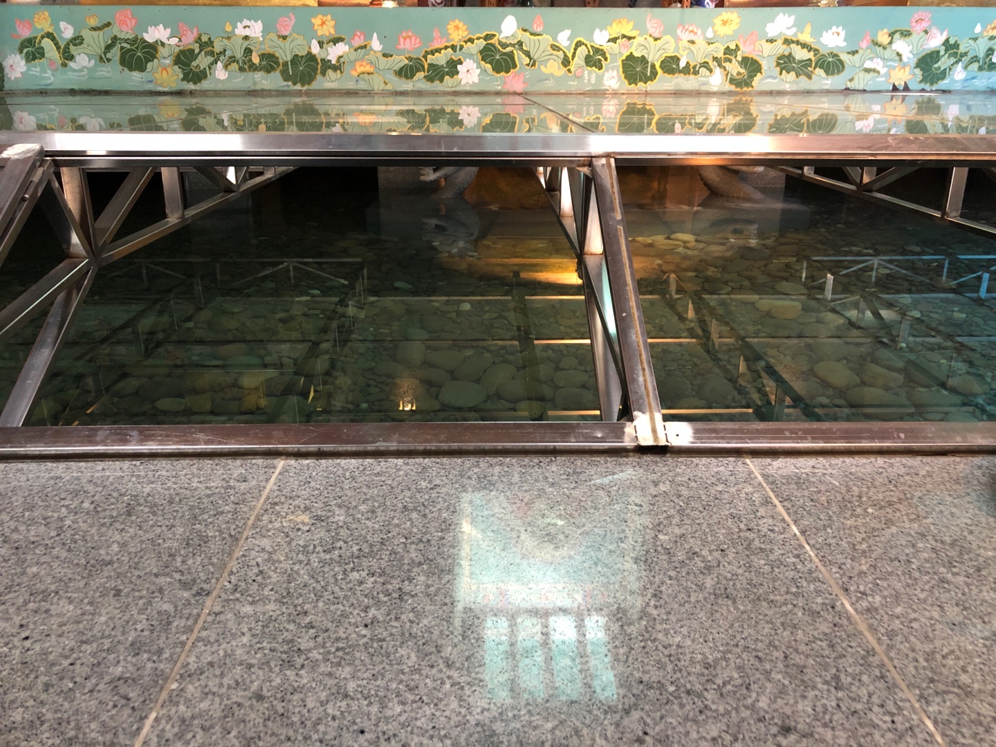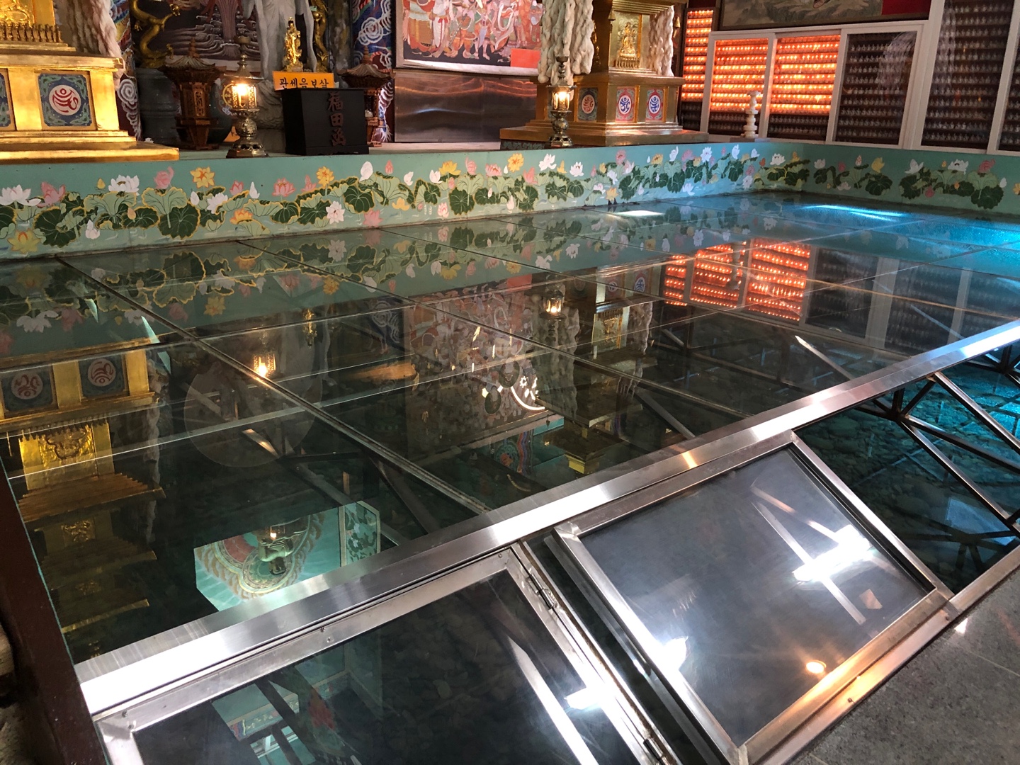 저 뒤편은 니스칠을 한 듯한 제단과 계단을 보니, 저 뒤편에 물이 있는가 보다.