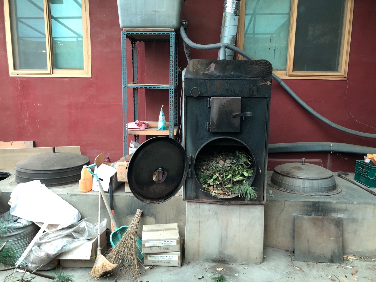 그 오른쪽에는 화목보일러가 있다.