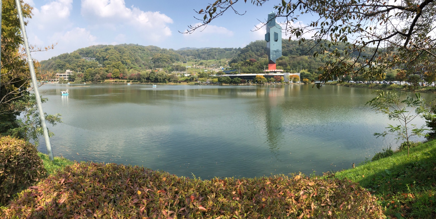 인도는 명암호수의 주변으로 길게 이어져 있다.