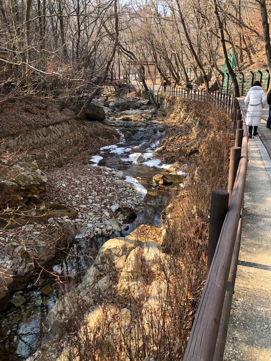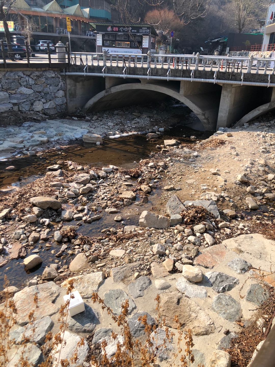 바로 옆 계곡은 엄청나게 맑아 보이는 물이 흐르고 있다.
