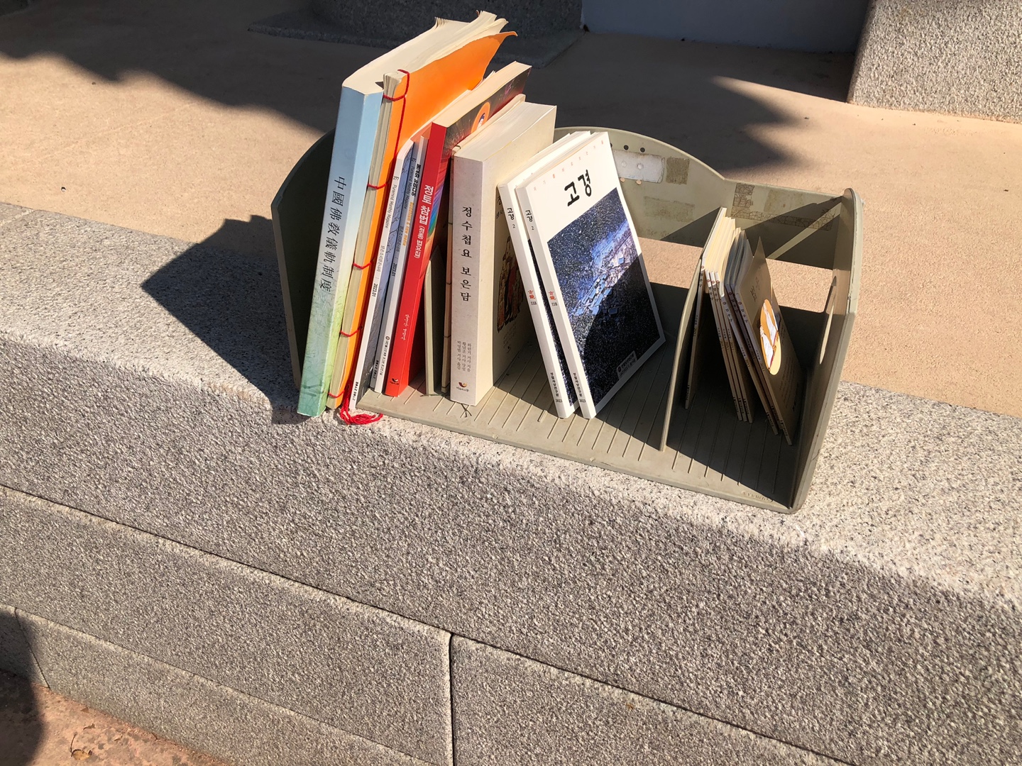 종무소 앞에 책이 있다.