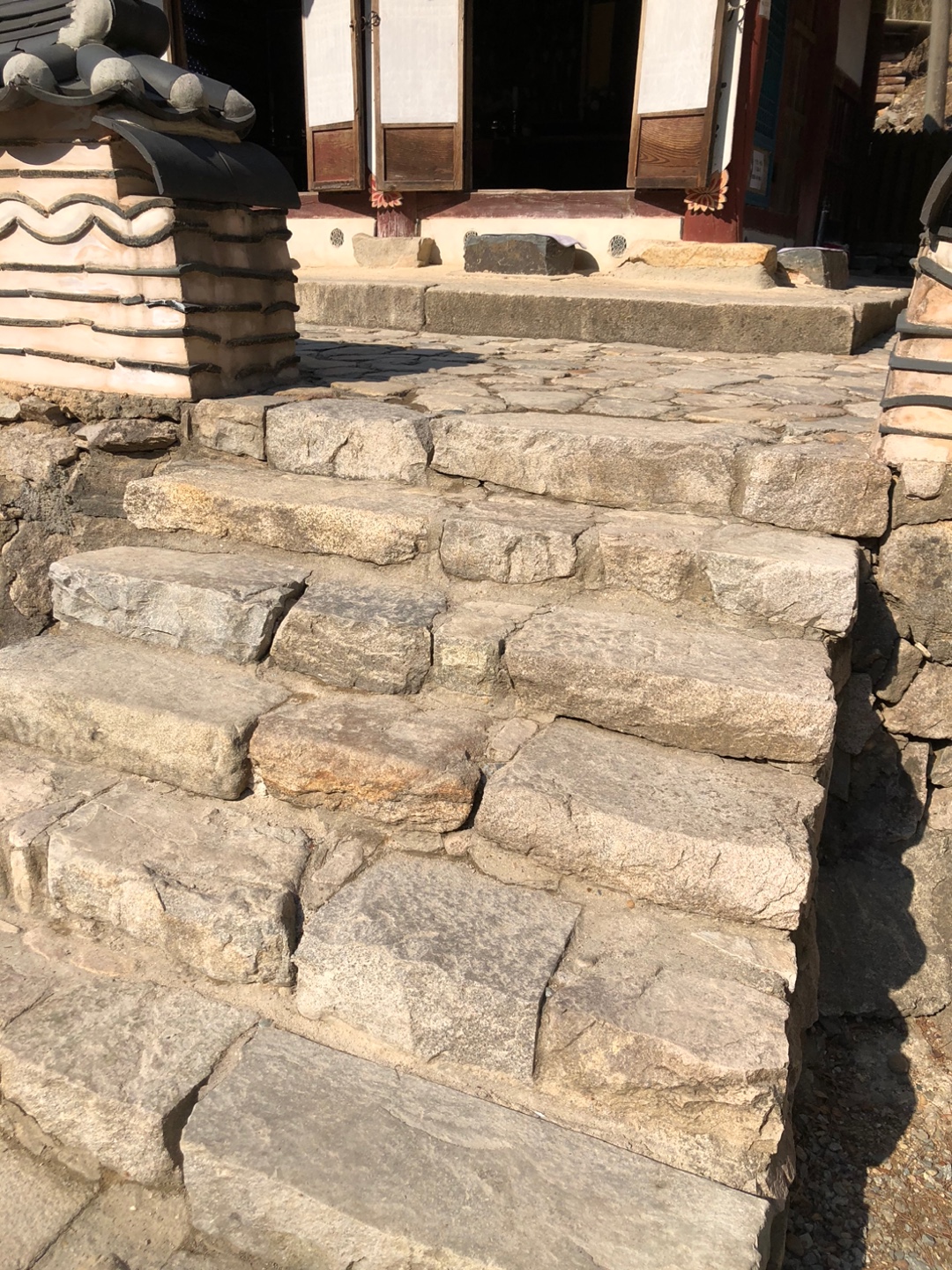 계단은 새로운 돌과 과거의 돌이 섞여있다.