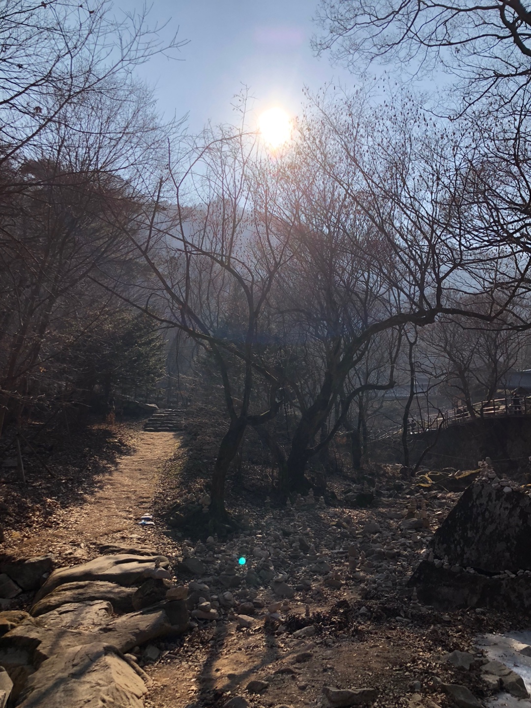 거의 다 오니 물가에 사람들이 작은 탑을 쌓아두었다.