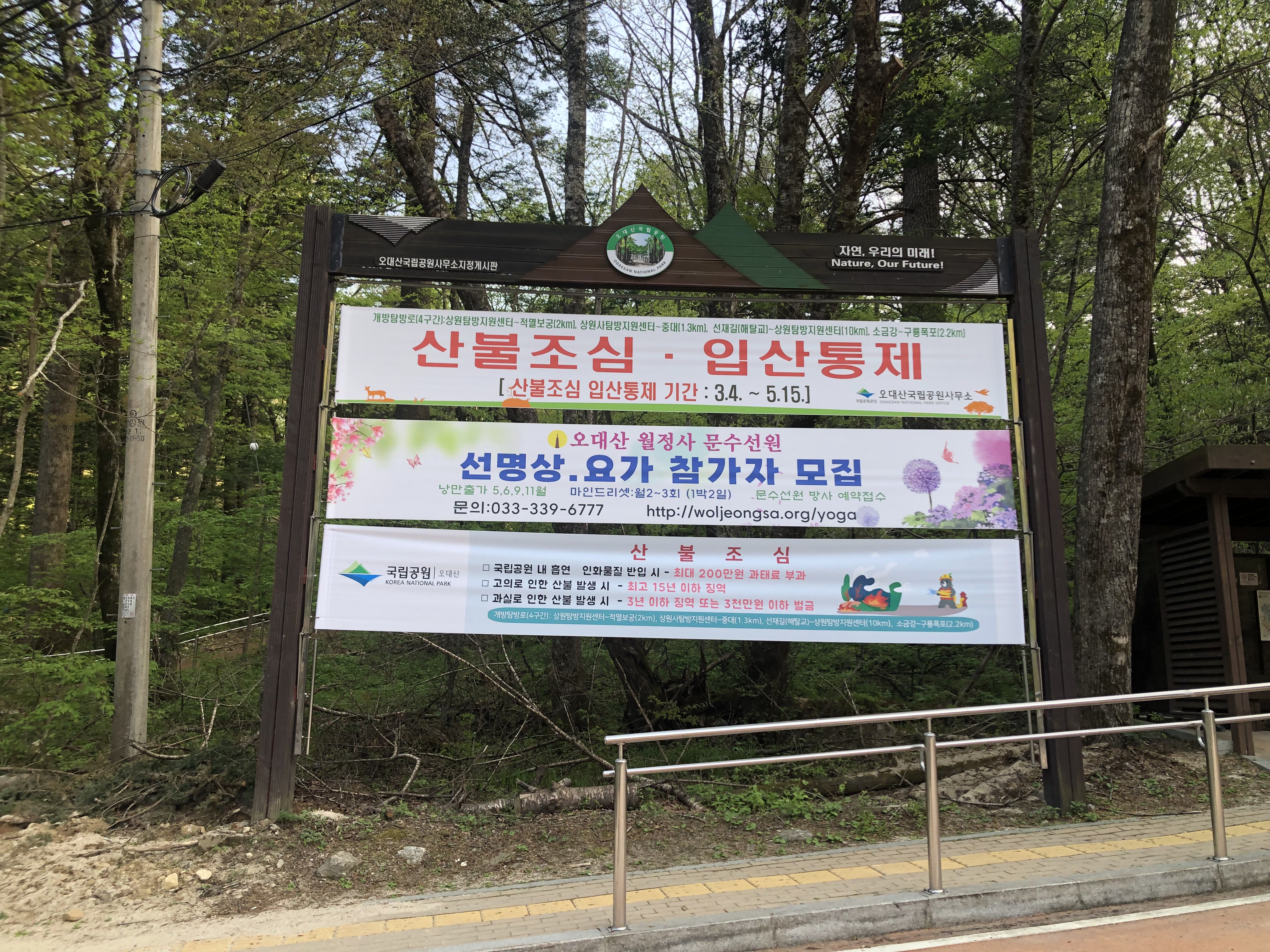 상원사 주차장에 도착하니 시간이 늦어 중대 적멸보궁의 참배는 불가능함을 직감한다.