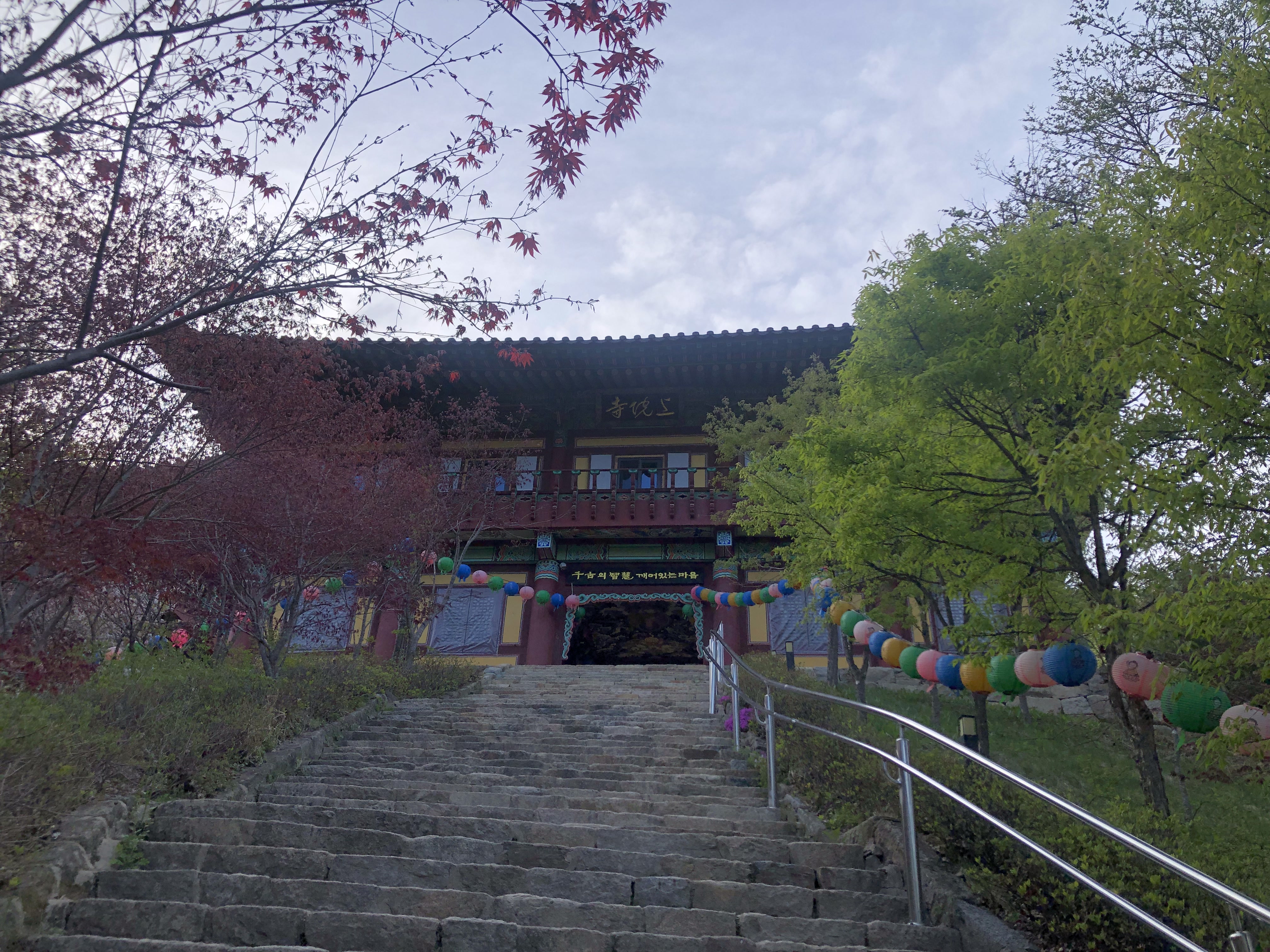 처음 향상문을 들어가지 못하고 왼쪽의 계단을 바라보니 저 멀리 영산전이 보인다. 영산전사실 이날은 영산전 입구에 갔다가 발길을 돌렸었다.열쇠로 문을 걸어 잠가 열 수가 없었기 때문