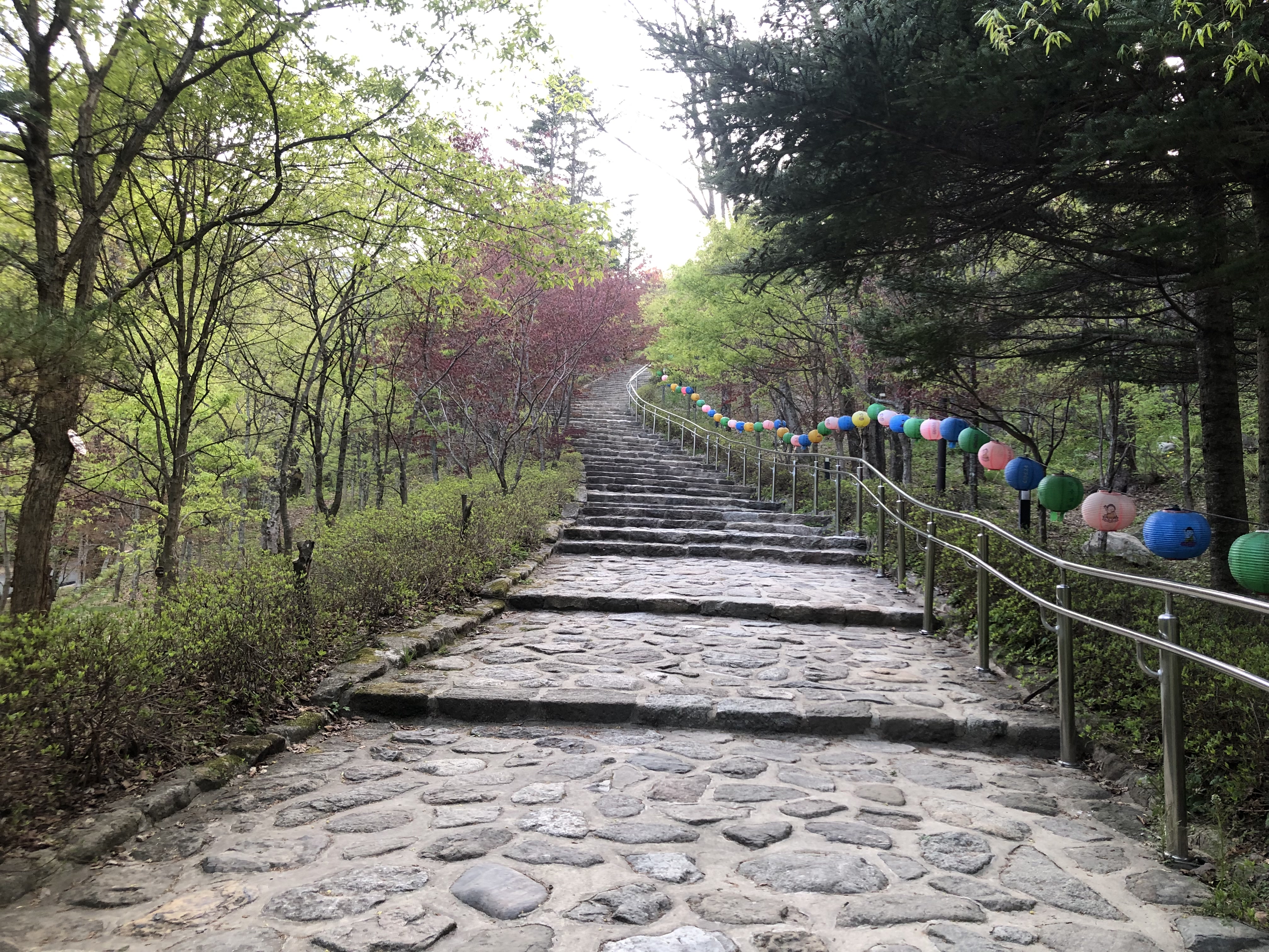 처음 향상문을 들어가지 못하고 왼쪽의 계단을 바라보니 저 멀리 영산전이 보인다. 영산전사실 이날은 영산전 입구에 갔다가 발길을 돌렸었다.열쇠로 문을 걸어 잠가 열 수가 없었기 때문