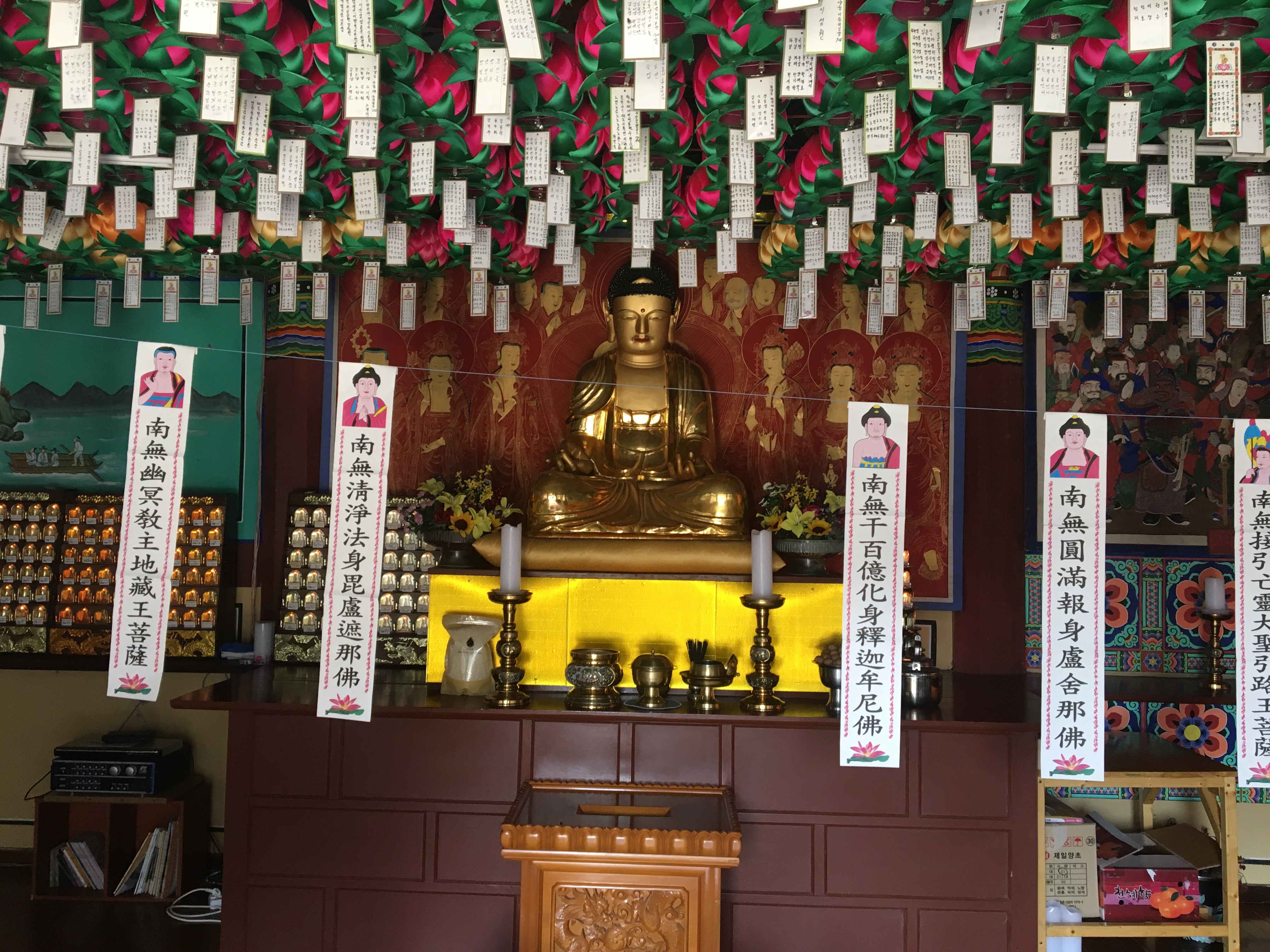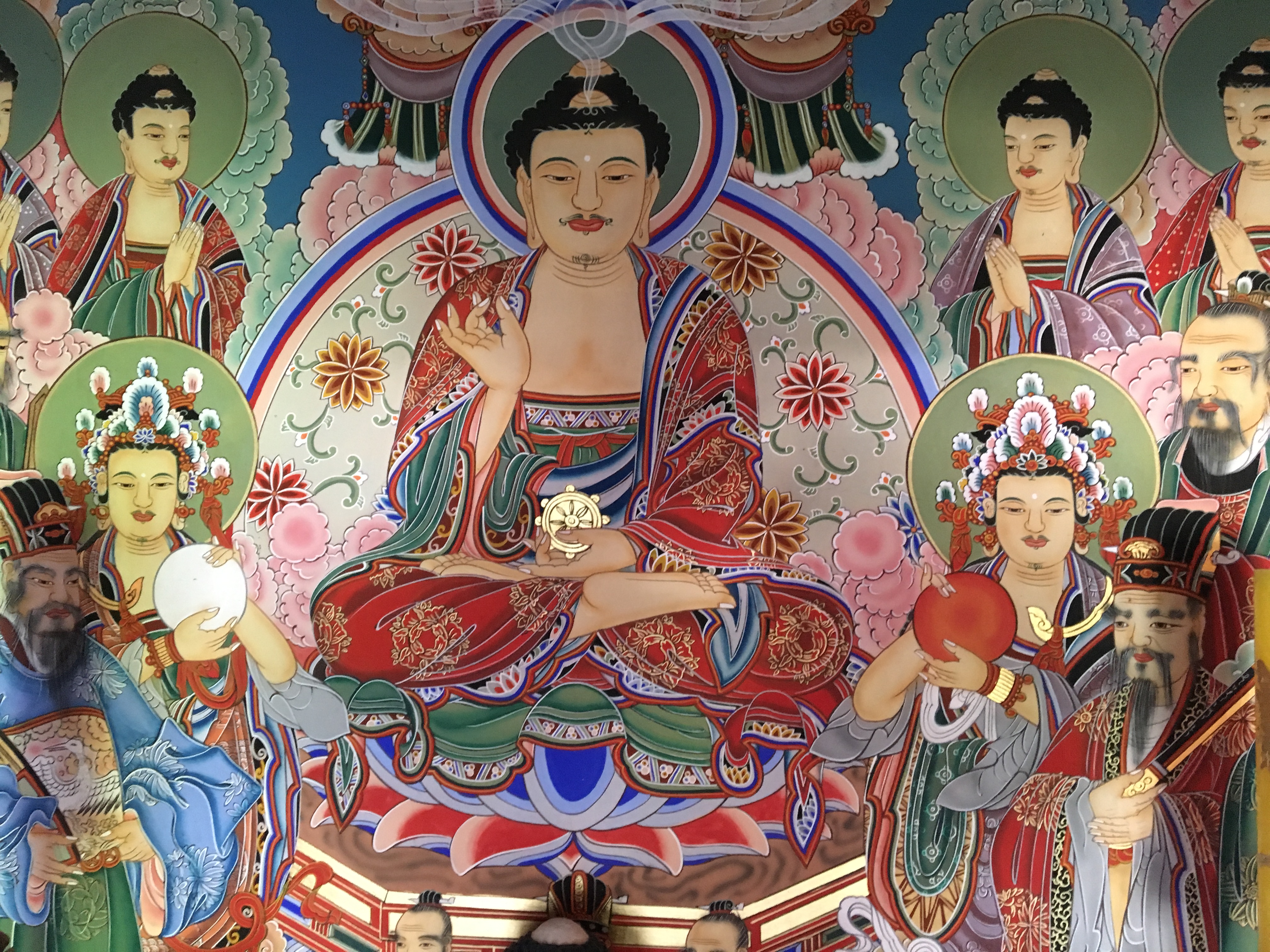 대웅전에 들어가면 먼저 가운데 아미타 부처님이 계신다.